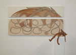 2004Installatie van tekening op doek (tweeluik) met stoffen haas. Verkocht aan de kunstcommissie van de Isala klinieken.